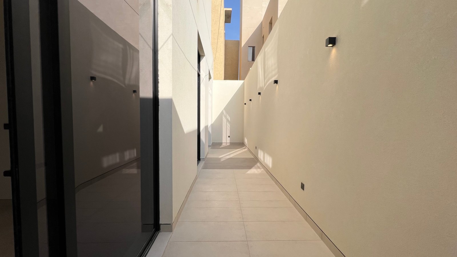 Modern luxury design | Direct car entry (drive-in) | Central air conditioning throughout | Passenger elevator | Indoor garden | Additional outdoor kitchen | Contemporary design compliant with modern Saudi building standards | Customization options for interior design modifications | Building completion certificate | Plumbing and electrical warranties | Malath insurance coverage | Strategic location close to public transportation | Easy access to schools and shopping centers
