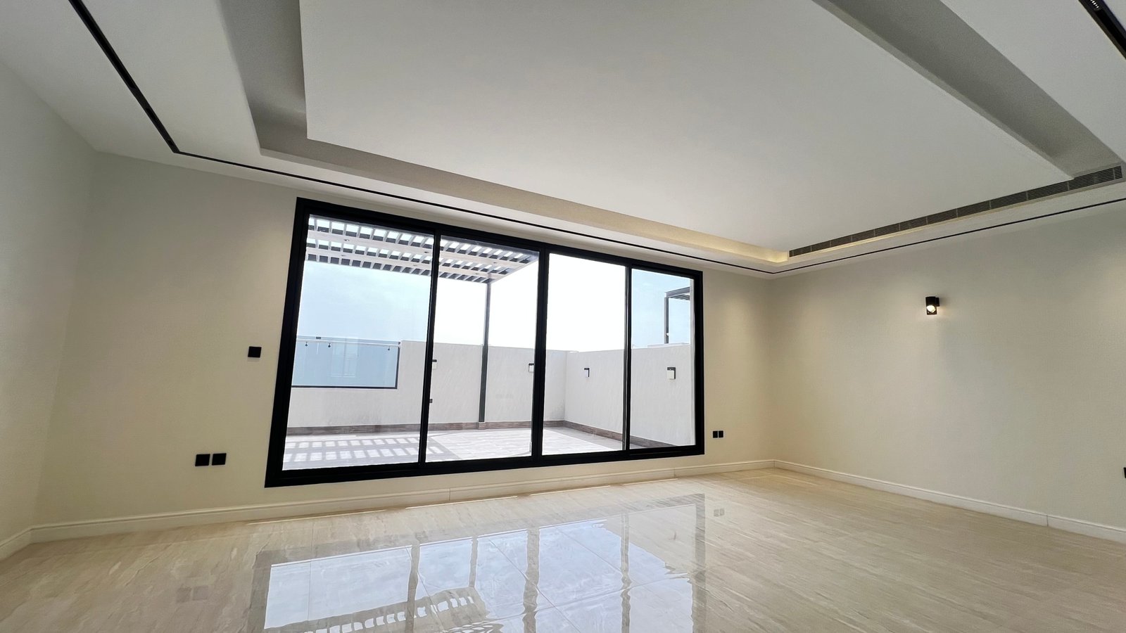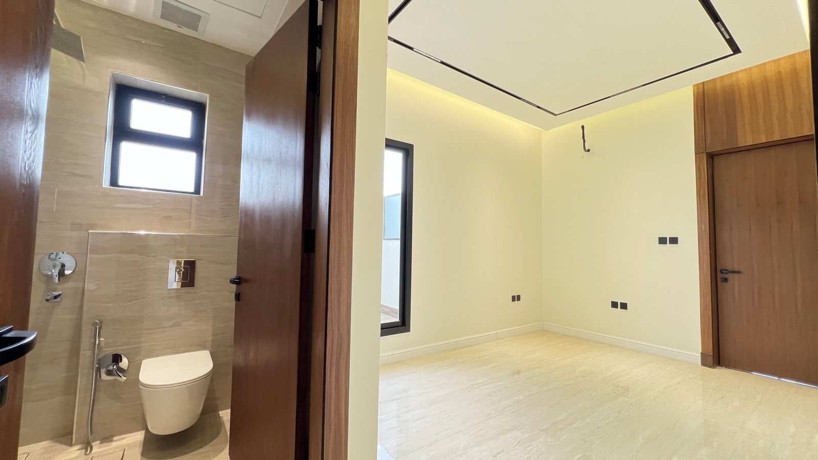 إجمالي غرف النوم: 4 غرف ماستر | إجمالي دورات المياه: 9 دورات مياه | المجالس والصالات: 3 صالات + مجلس | المطابخ: مطبخ متكامل | إضافات: غرفة خادمة + غرفة سائق + غسيل + مصعد + حديقة + سمارت هوم