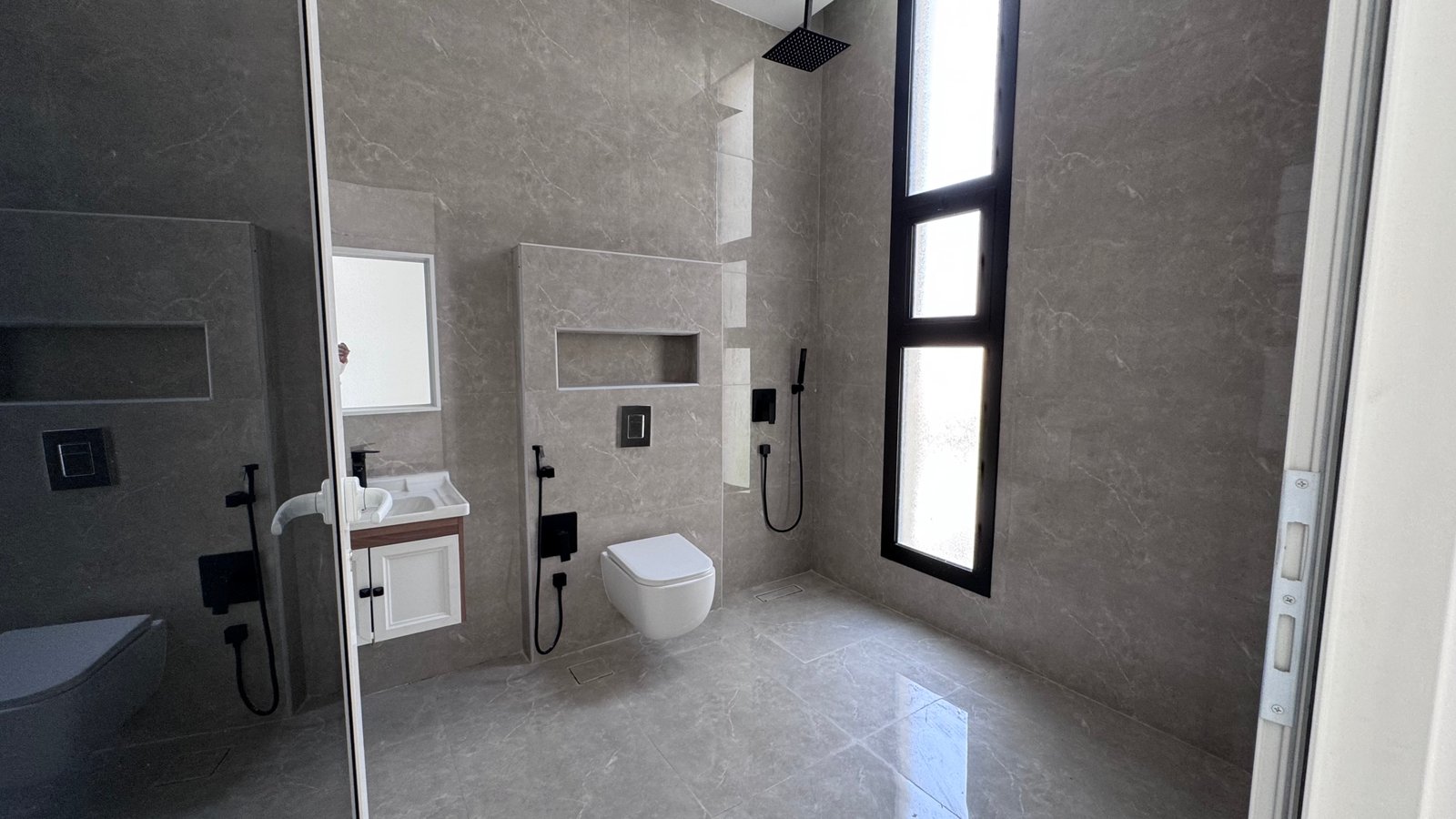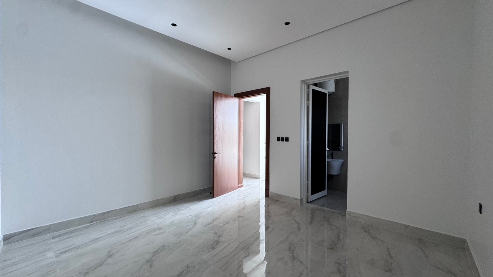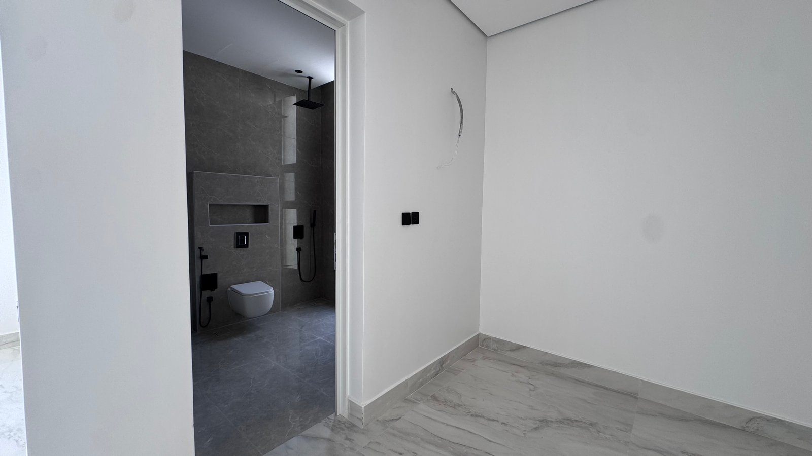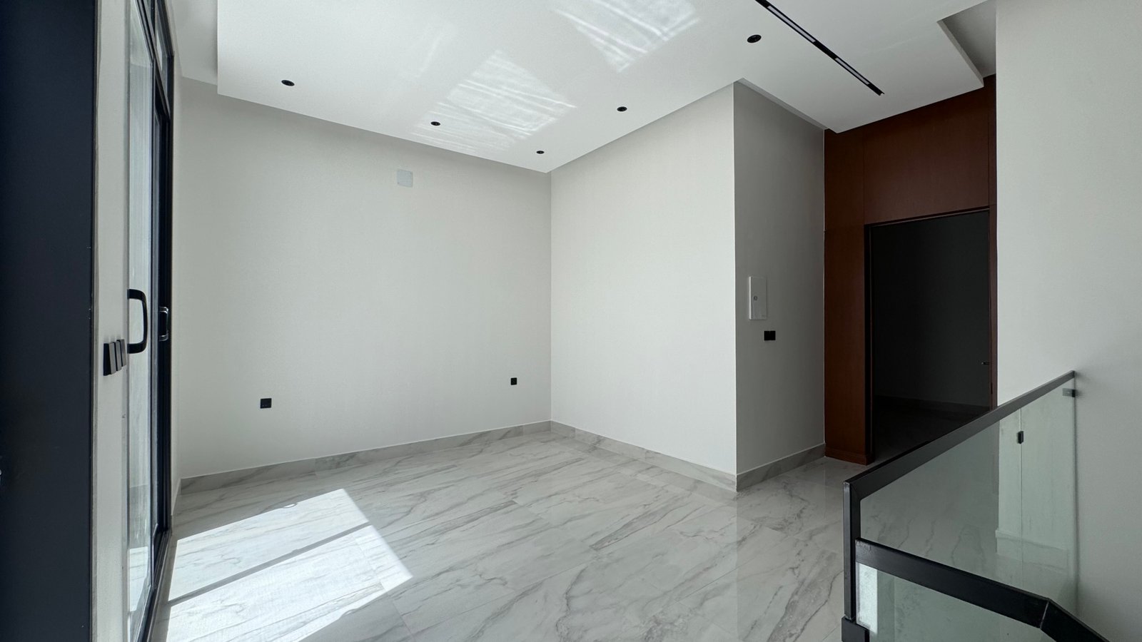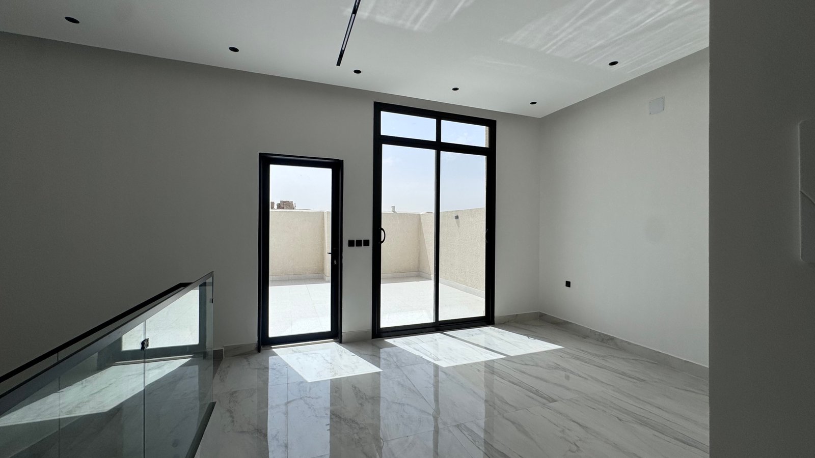 - الدور الثاني: غرفة ماستر + غرفة إضافية + غرفة غسيل